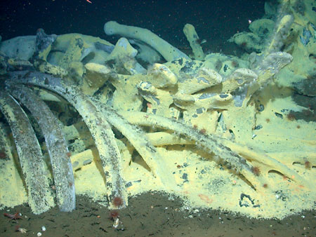 De notre point de vue, nous avons du mal à réaliser que deux êtres vivants aussi dissemblables qu’une bactérie et une baleine possèdent de l’ADN de la taille d’une molécule… alors que ces deux êtres n’ont pas grand chose en commun. Et pourtant, la vie et la mort de l’un peut conditionner étroitement l’existence de l’autre sans que les deux en aient « conscience ». Ainsi, dans les profondeurs des mers, des bactéries se développent sur des os de baleines. Dans ce milieu, à mesure que l’oxygène se raréfie, les bactéries provoquent une augmentation du sulfure et l’arrivée d’espèces qui vivent en symbiose. Les bactéries sur les os utilisent comme source d’énergie le sulfure d’hydrogène produit par d’autres bactéries qui s’attaquent à l’intérieur de l’os. C’est le début d’une chaîne alimentaire spécifique aux abysses, la chimiosynthèse. À l’échelle d’une bactérie à la durée de vie limitée, un os de baleine est un univers infini qui n’a ni début ni fin.