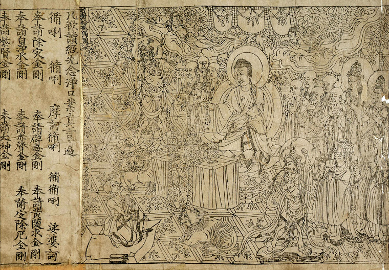 Le bouddhisme tantrique tibétain est en effet une voie spirituelle qui a révolutionné le bouddhisme traditionnel tel qu’on le pratiquait en Inde et en Asie du Sud-Est au sens où, qu’on soit moine, laïc ou même hors-la-loi, il est question d’atteindre l’Éveil en une seule vie sans passer par de multiples renaissances, à condition de se soumettre à des pratiques ésotériques rigoureuses : méditations, récitations de mantras, visualisions de divinités tantriques appelées yidams qui ne font qu’une avec le yogi, telles que Dorje Naldjorma, Prajnaparamita ou Tara… des divinités souvent féminines, très valorisées, le principe féminin symbolisant la sagesse. On peut admirer les peintures de ces divinités tantriques dans les grottes de Mogao.