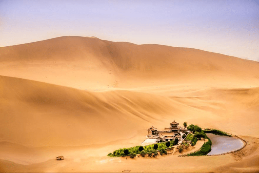 Les grottes de Mogao, ce sont aussi les immenses dunes de Mingsha. On les surnomme « dunes chantantes » car sous l’effet du vent elles émettent une curieuse mélodie qui fascine les personnages de mon roman. Au milieu de ces dunes s’étend le Lac du croissant de lune, un véritable oasis.