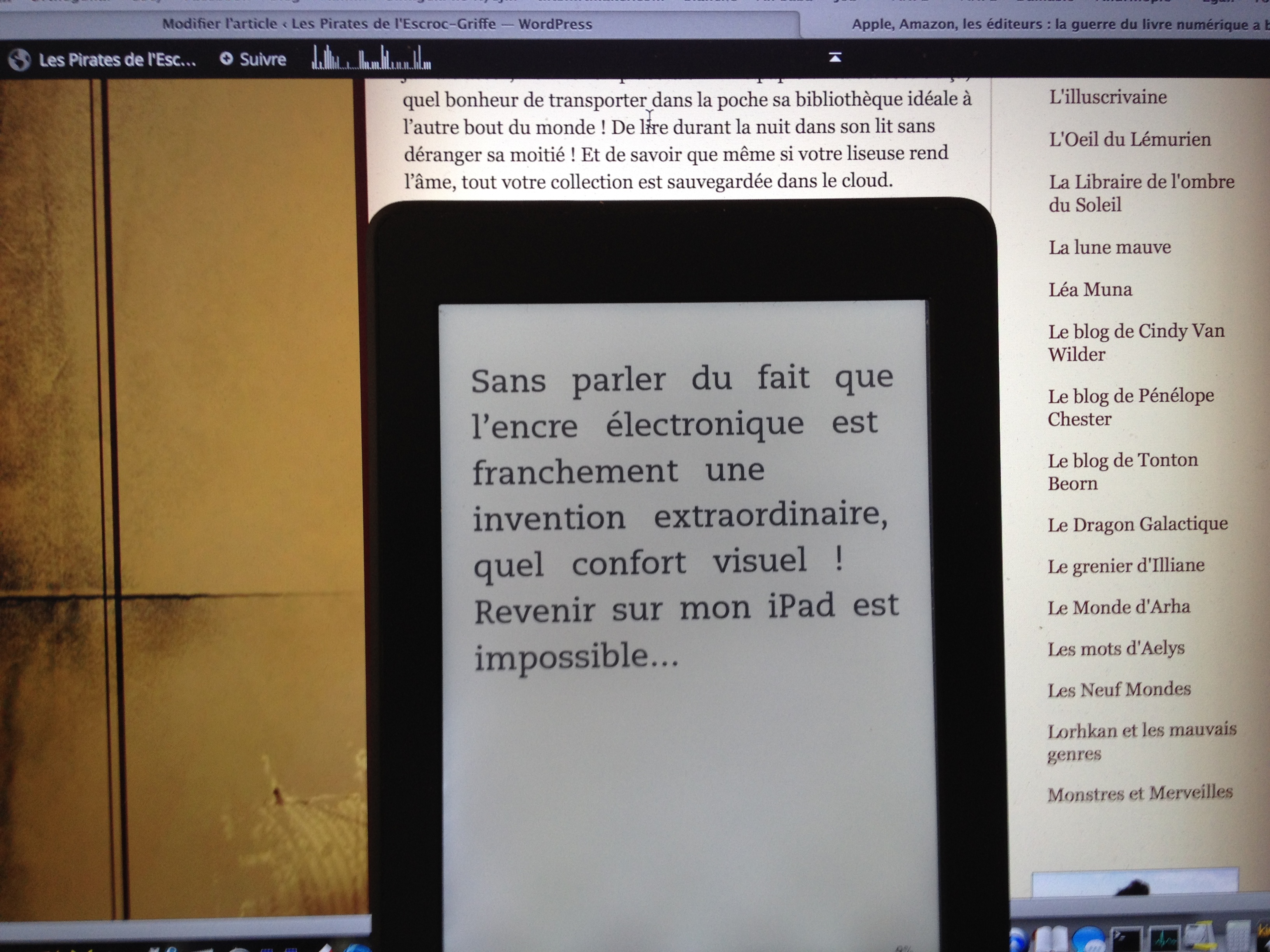 J’ai lu en deux heures l’excellent bouquin d’Andrew Richard Albanese : 9,99$, La Guerre du livre numérique. Il faut dire que le geek que je suis était particulièrement concerné par le sujet : j’ai acheté l’iPad dès sa sortie en 2010, et plus tard j’ai basculé du côté obscur de la Force avec un Kindle, sans pour autant renier l’iPad, qui me sert à lire des comics en couleurs. Andrew Richard Albanese a parfaitement résumé la courte (mais tumultueuse) histoire de l’ebook. Depuis 2010, ce ne sont pas quatre années, mais plutôt quatre siècles qui se sont écoulés ! Les liseuses, les tablettes et les smartphones sont partout. Et pourtant en France, le marché des livres numérique se développe lentement. La technologie a beau être mature, le monde de l’édition n’a pas forcément pris la mesure de cette révolution qu’est la dématérialisation, une lame de fond qui a failli emporter l’industrie musicale à la fin des années 90. Le livre d’Albanese se résume à une seule problématique.