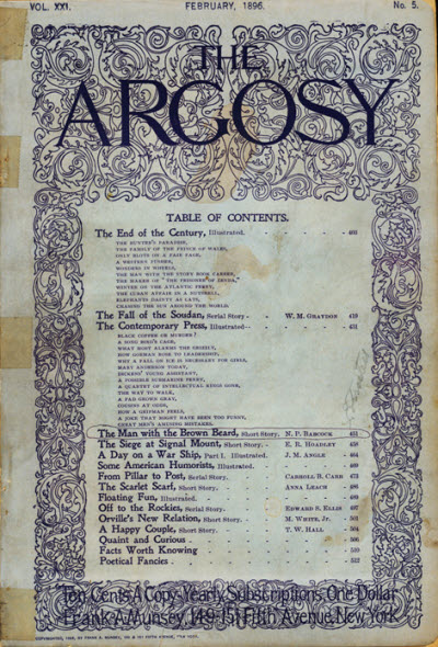 En haut, le premier numéro d’Argosy version pulp du mois de Février 1896. En bas, le numéro d’Octobre 1896 (d’autres photos ici).